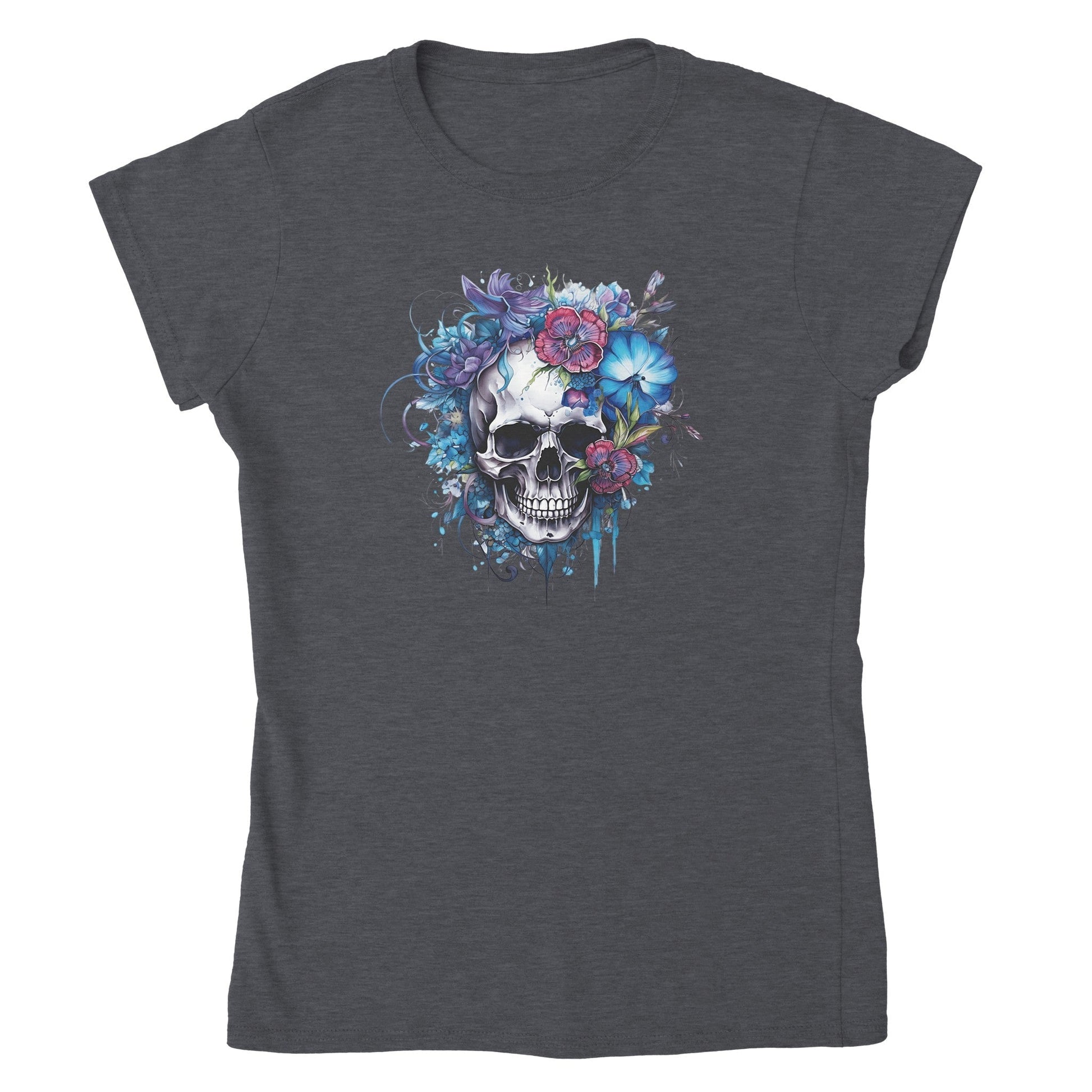 Mit unserem Blumenschädel Damen Shirt genießen Sie den ganzen Tag über ein weiches und angenehmes Tragegefühl, dank 100% ringgesponnener Baumwolle. Perfekt für lange Tage.